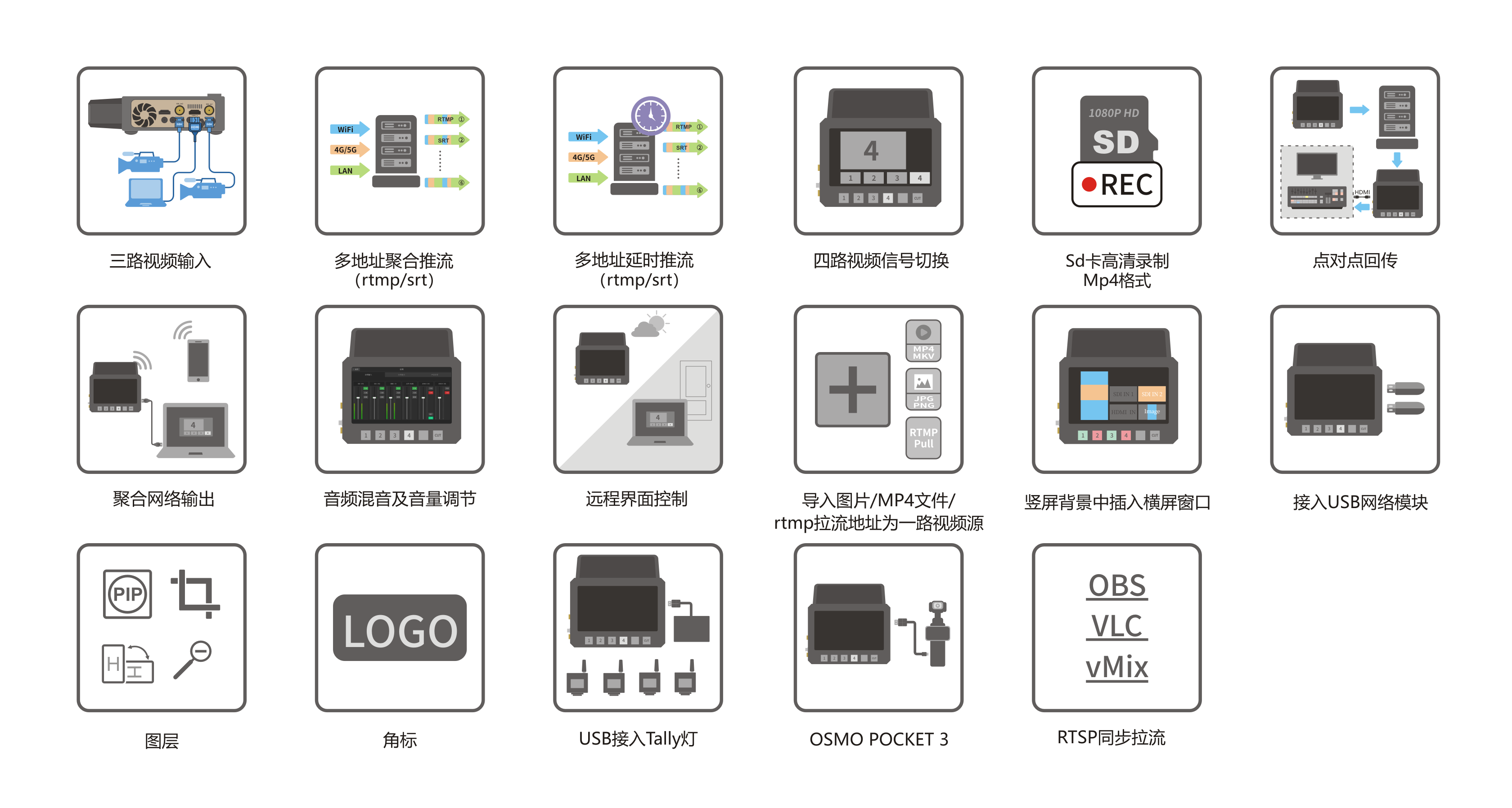 | 流媒體協議 | HLS、RTMP/RTMPS、UDP-TS、SRT | |